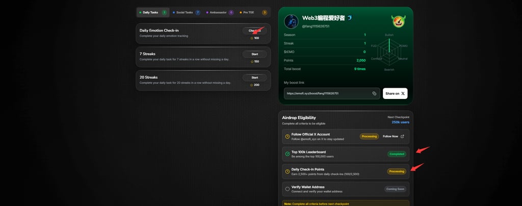 EmoFi (@emofi_xyz),这是一个将“情绪价值”资产化的创新 Web3 项目: